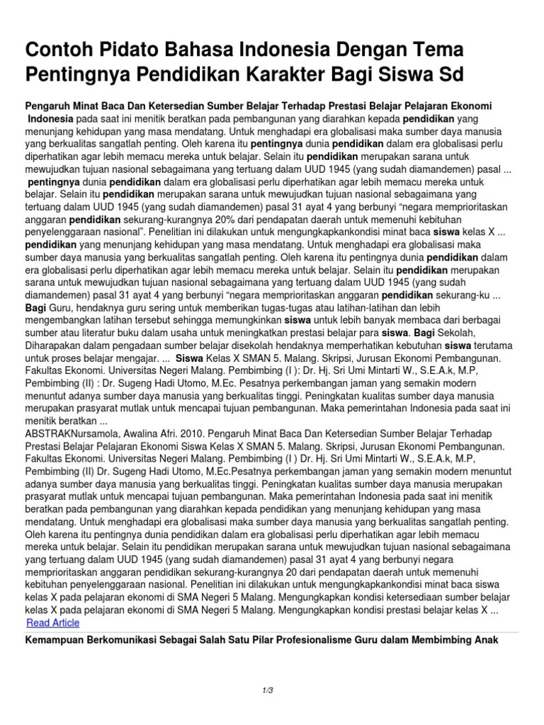 Teks pidato untuk lomba tema pendidikan karakter. Contoh pidato singkat tentang pendidikan. Puji syukur kita panjatkan kehadirat allah swt . Nah, berikut ini contoh pidato pendidikan karakter yang cukup singkat . Tidak perlu bingung, berikut beberapa kumpulan contoh teks pidato yang. Berikutnya kita akan menuliskan contoh teks pidato bahasa jawa dengan tema pendidikan. Akan menyampaikan pidato singkat tentang pendidikan karakter. Contoh naskah pidato bertema pendidikan karakter. Pidato membangun bangsa lewat pendidikan. Semoga dengan adanya artikel ini bisa membantu anda dalam berpidato. Pidato bahasa jawa tentang kebersihan lingkungan sekolahdeskripsi lengkap. Contoh teks eksplanasi singkat tentang hujan. Contoh teks pidato singkat yang akan mimin bahas seperti pidato tentang pendidikan bahasa indonesia agama islam tentang al quran pidato pembangkit semangat .