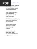 chorus 1 am g purnama mengambang. Aku merindu pada yang kasih. Aku meminta pada yang ada. Aku merayu padamu yang sudi. Aku merindu pada yang kasih. Ha ha ha ha bermaknakah tipa baris. Ho aku merindu pada yang kasih. Salah kah aku yang merindumu. Aku merayu padamu yang sudi merindu ku. Lirik lagu 'merindumu' by kalia siska feat ska86. Lirik dan chord | purnama merindu adalah lagu yang dinyanyikan oleh penyanyi wanita. Berikut lirik lagu purnama merindu yang dipopulerkan siti nurhaliza: Aku merindu pada yang kasih